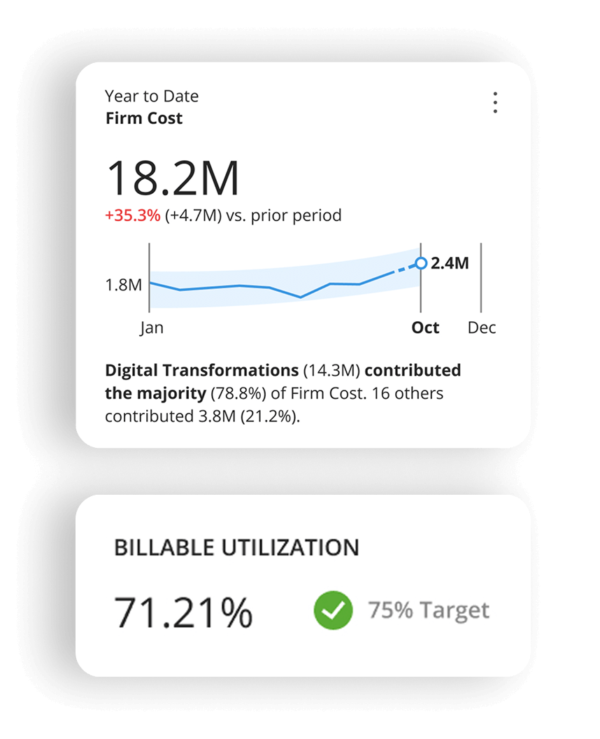 AI-powered delivery, resourcing, and financials — built to optimize visibility, scale your expertise, and drive transformation that'll keep you ahead of change.